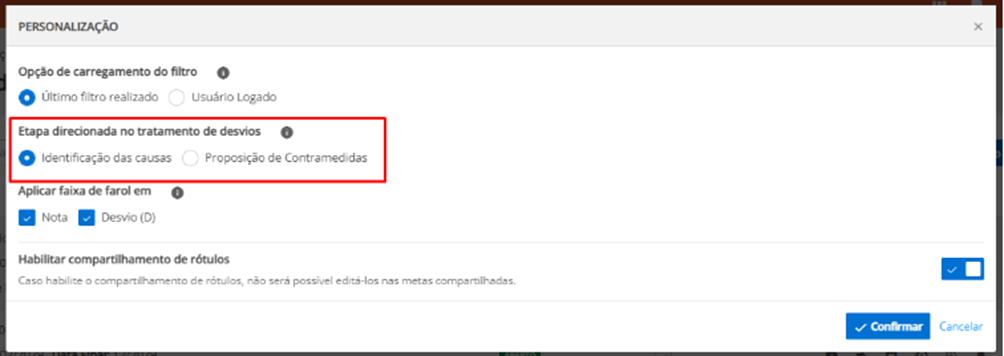 Esse redirecionamento segue a opção selecionada em "Etapa direcionada no tratamento de desvio" (Core > Cadastro > Período de Gestão > Personalização a configuração):