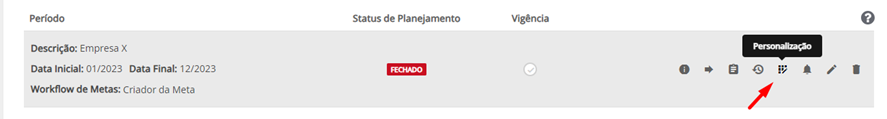 2. Em Períodos de Gestão, escolha aquele período em que fará a alteração dos filtros e clique no ícone Personalização: