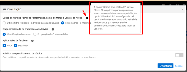 3. Ao acessar o ícone, selecione o Filtro Padrão – O mesmo para todos os usuários. Após isso, basta clicar em confirmar e a alteração será salva.