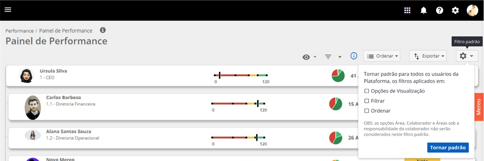Conheça o novo Filtro Padrão e defina como os seus colaboradores visualizam o Painel de Performance