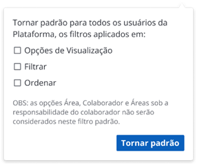 Anteriormente, cada usuário precisava configurar os filtros de acordo com suas preferências. Agora, o Administrador poderá definir uma configuração padrão que será aplicada automaticamente a todos os usuários da plataforma.
