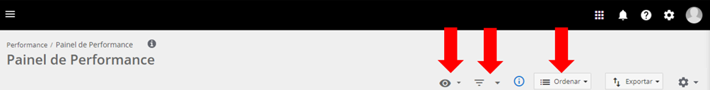 Antes de selecionar essas opções, o Administrador deverá ajustar as informações nos filtros do Painel de Performance. A organização dessas vai estar de acordo com as especificações que deseja tornar comum a todos os usuários da empresa: