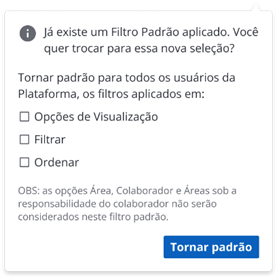 Basta clicar em “Tornar Padrão” e pronto, as configurações se tornarão comum a todos os tipos de usuário da plataforma. Um aviso aparecerá confirmando que o filtro foi aplicado: