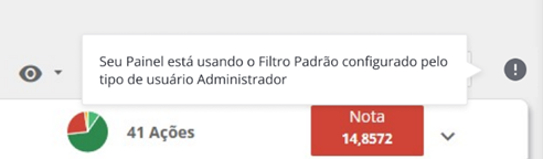 Quando um colaborador acessar o Painel de Performance, um ícone informativo trará a mensagem de que os filtros do painel foram padronizados pelo Administrador: