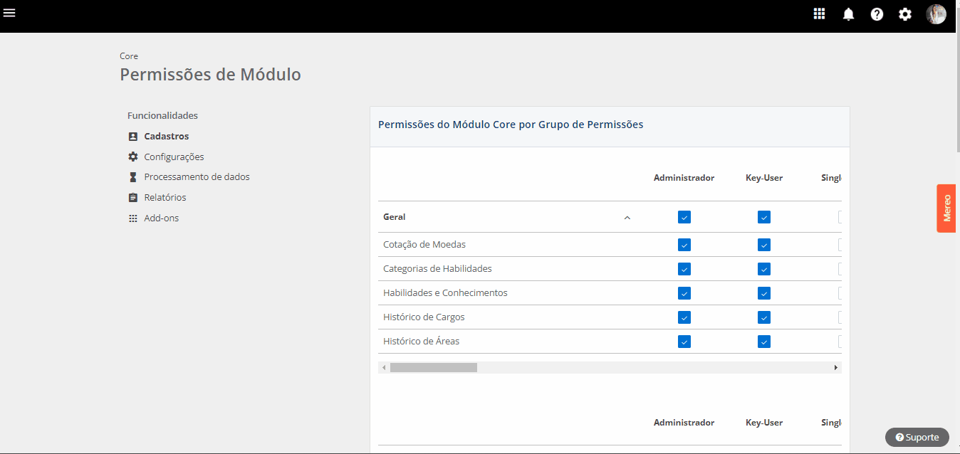 Para configurar essa feature, a “Gestão de rótulos” deve ser habilitada em [Configurações] > [Permissões de Módulo] > [Cadastros] > [Setup Inicial]: