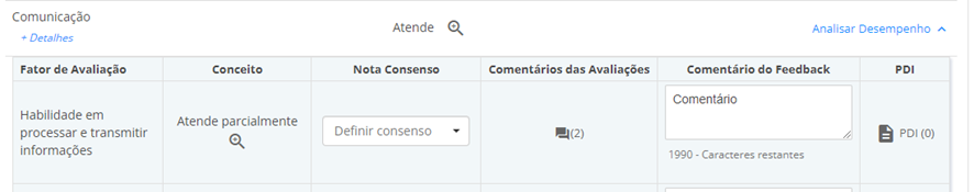 1.5. Para visualizar os comentários, clique em "Comentários das Avaliações". Logo ao lado, em "Comentário do Feedback", se estiver habilitado para que sejam realizados comentários, você pode incluir o seu: