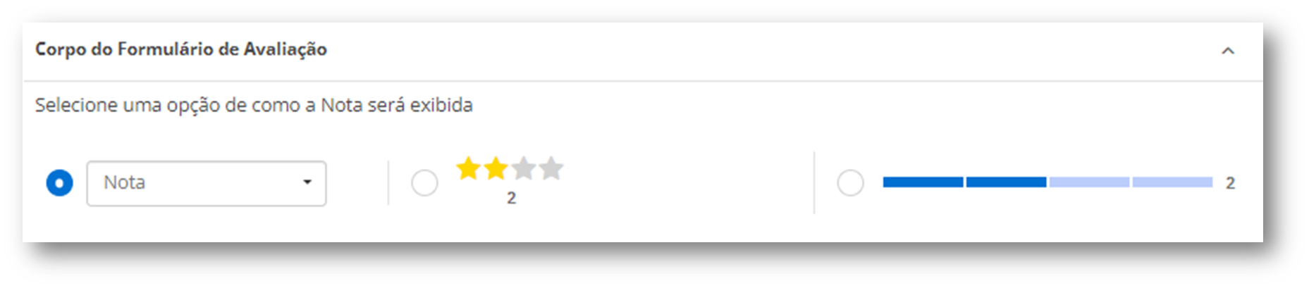 Obs.: as opções de exibição de Nota Calculada que aparecem hoje em “Personalização” no Cadastro do Ciclo, dizem respeito ao Resumo da Avaliação e não do Formulário de Avaliação em si.