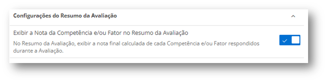 - A exibição dessa nota depende da ativação da configuração abaixo que se encontra em Cadastro de ciclo > Personalização > Avaliação > Configuração e Resumo da Avaliação;