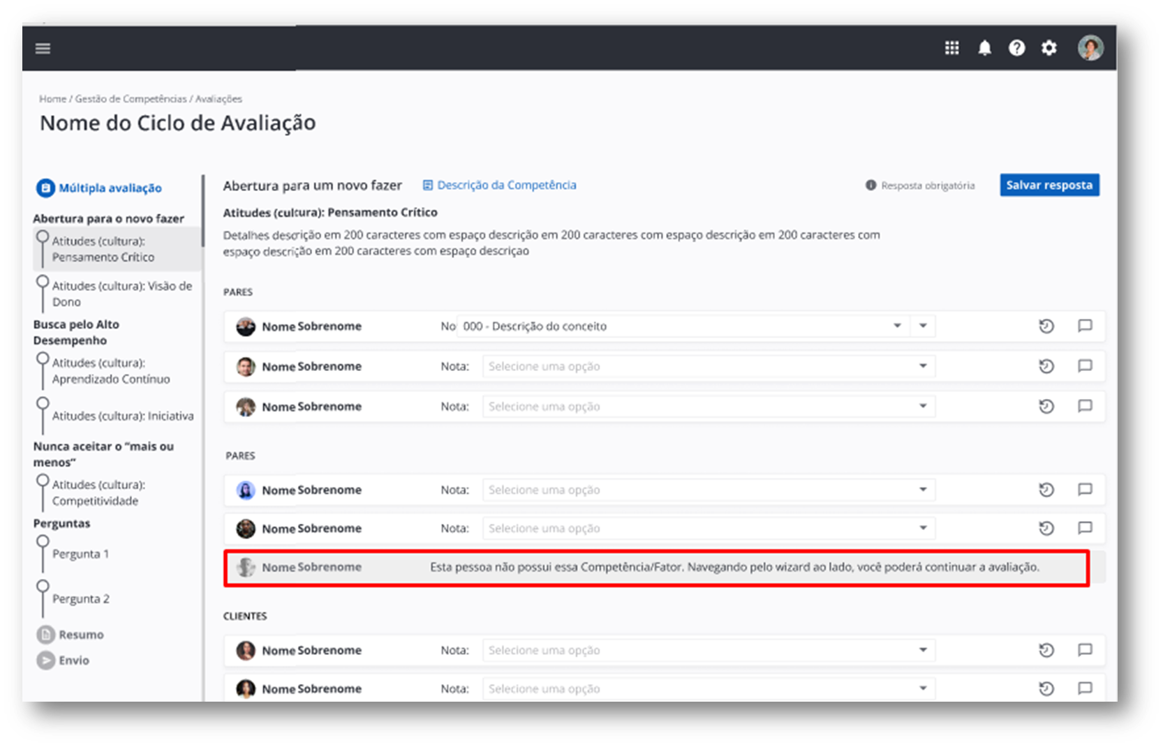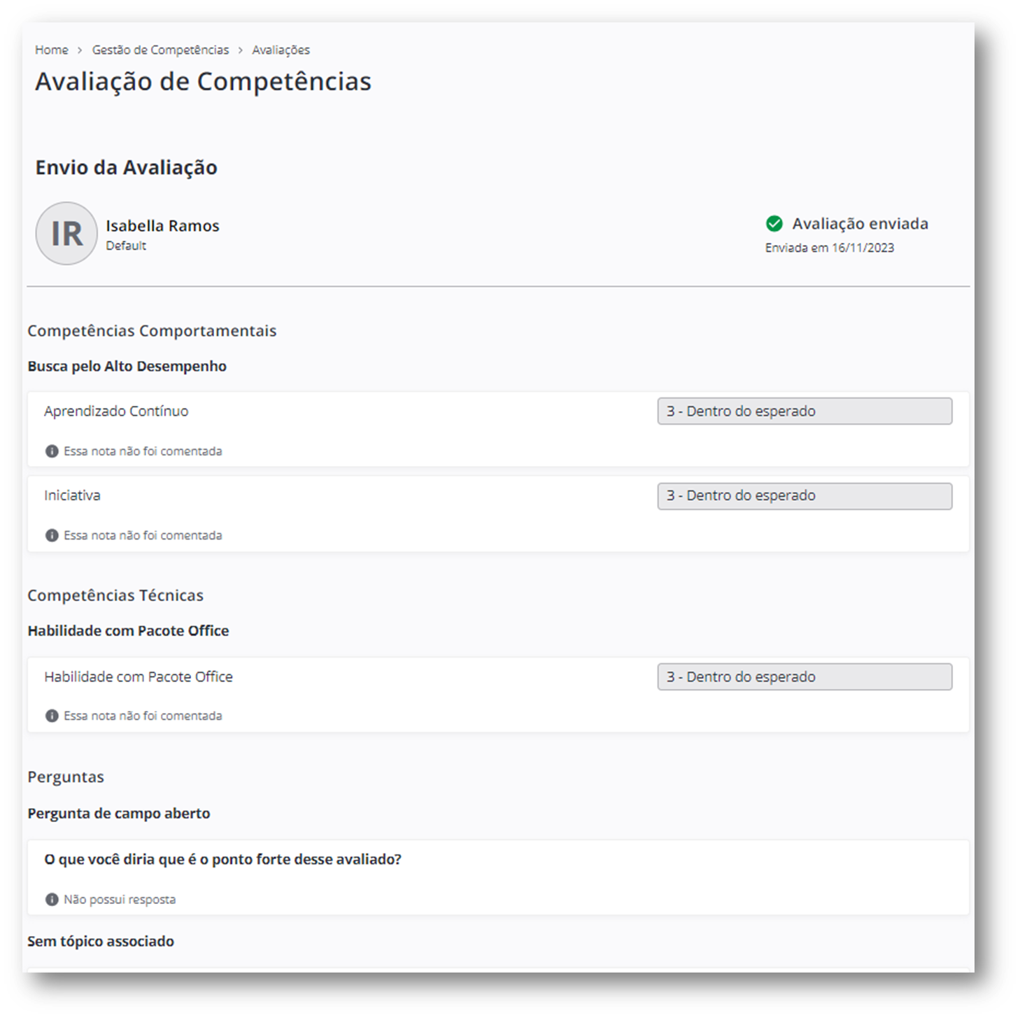 Caso a Competência não exista para um avaliado específico, será sinalizado como no exemplo abaixo.