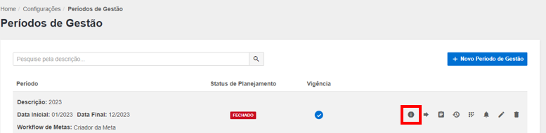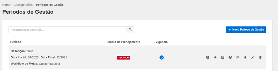 Geralmente, só o administrador da plataforma tem acesso ao Período de gestão e pelo menos um dos períodos precisa estar vigente.