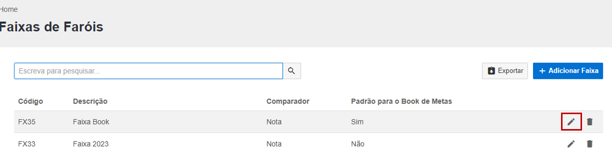 Localize a Faixa de farol clique no ícone do lápis para editá-la: