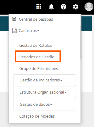 Na barra superior, clique em Configurações e depois em Períodos de Gestão: