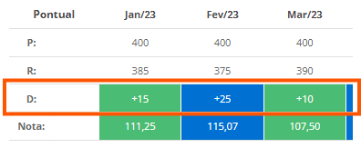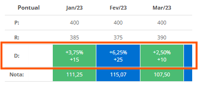 Optando por esse desvio, você verá o valor em percentual no acompanhamento mensal da meta:
