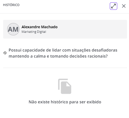 Em cada Competência, Fator ou Pergunta, há um ícone para consultar o histórico de ciclos passados, ou seja, mostrar qual foi a resposta para o mesmo item e avaliado em um ciclo anterior.
