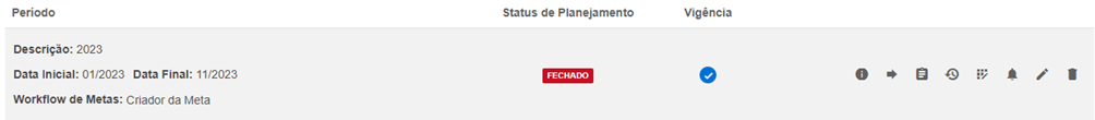 Na primeira linha temos a meta GOAL_0001, com a frequência de acompanhamento mensal. Por isso, todos os meses estão preenchidos. Já a meta a GOAL_0002 tem a frequência de acompanhamento anual, e por isso deve ser preenchido somente na última coluna.