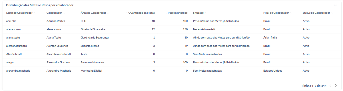 O Relatório de Distribuição das Metas e Pesos por Colaborador acaba de receber uma atualização que trará mais visibilidade e precisão para as análises de resultados: agora, o relatório inclui o campo de Filial.