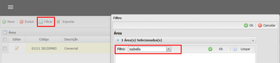 - Usar essa nova lógica também nos filtros da tela de listagem de áreas;