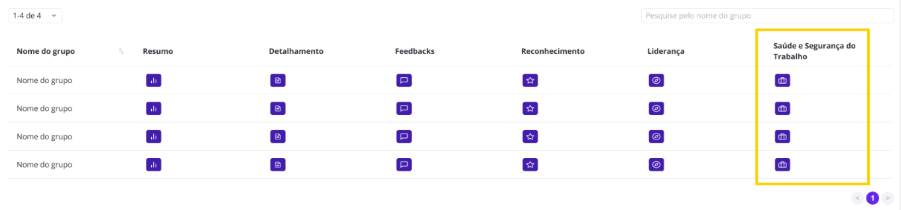 Adicionamos a coluna “Saúde e Segurança do Trabalho” na visão de grupo do dashboard NR01.