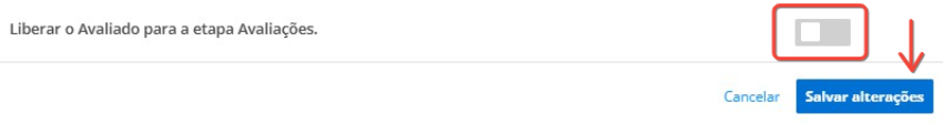 Feitas as adições dos avaliadores, habilite a flag Liberar o Avaliado para a etapa de Avaliações, para torná-lo apto a ser liberado para a etapa de avaliações, e clique em Salvar Alterações: